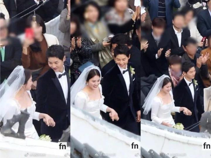 婚禮在室外舉行,氣溫較低且沒有陽光,宋慧喬的婚紗很單薄,新郎宋仲基一直握著新娘的手,不時(shí)搓手取暖,嫁給愛情的樣子超甜~
