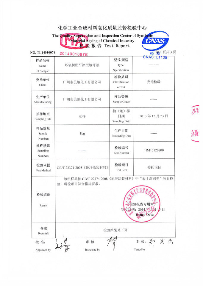 環(huán)氧自流平地坪漆檢驗(yàn)證書